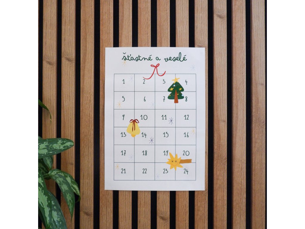Na rozdíl od klasických látkových kalendářů, kde děti často ztrácí přehled, je tento plakát krásně jednoduchý, přehledný a praktický. Můžete ho použít samostatně nebo jako doplněk k látkovému kalendáři. A pokud nechcete dávat do kalendáře sladkosti či dárky, je tato varianta ideální – každý den stačí jen odškrtnout a případně doplnit drobným úkolem či překvapením.