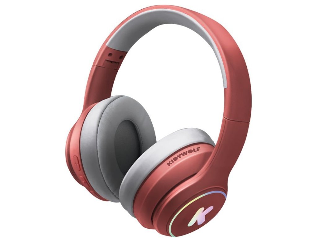 Blikající dětská sluchátka Kidywolf KIDYEARS - červená