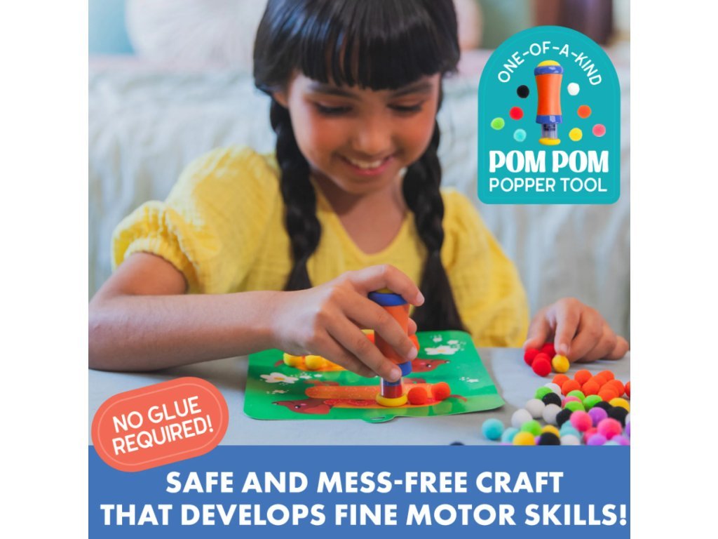 Princip je jednoduchý: děti berou pinzetou barevné bambulky a umisťují je na karty se zvířátky. Můžou sledovat předlohu, nebo si vymyslet vlastní kombinace. Výsledek? Roztomilá zvířátka v pestrobarevných „oblečcích" – a prstíky, které jsou zase o kousek šikovnější.