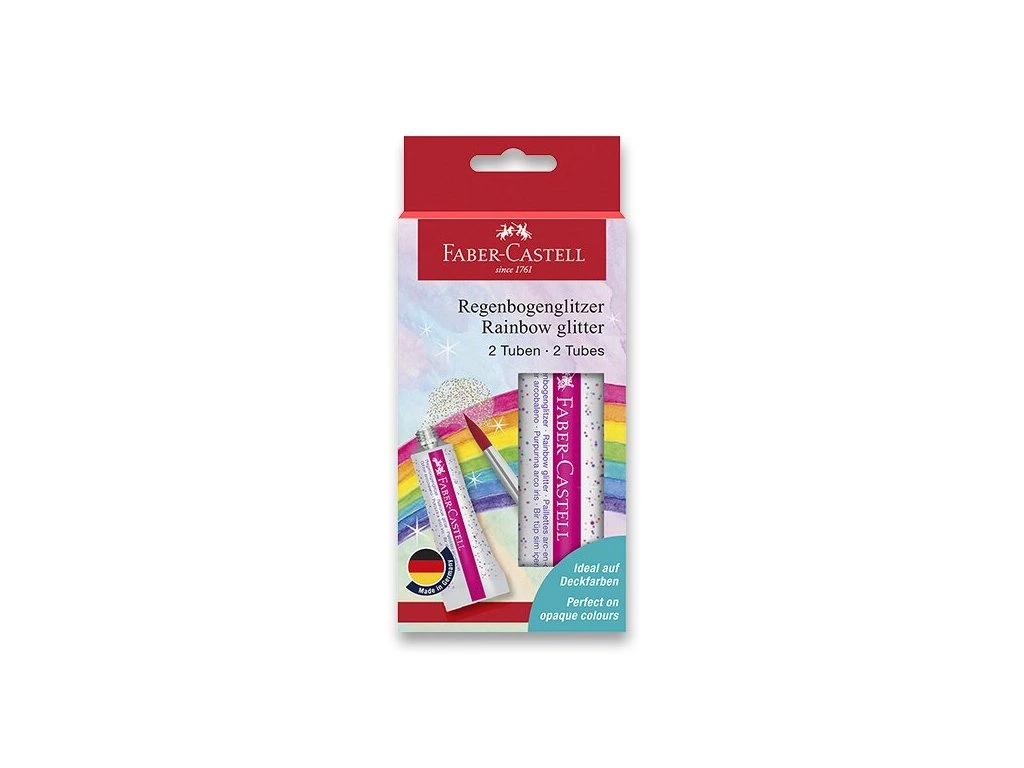 Děti třpytky milují – a rodiče naopak často děsí. Sypké glitry končí všude: na stole, na podlaze, ve vlasech, v koberci je najdete ještě měsíc poté. Faber-Castell Rainbow nabízí elegantní řešení: třpytky v tubě, které se nanášejí štětcem přesně tam, kam patří.