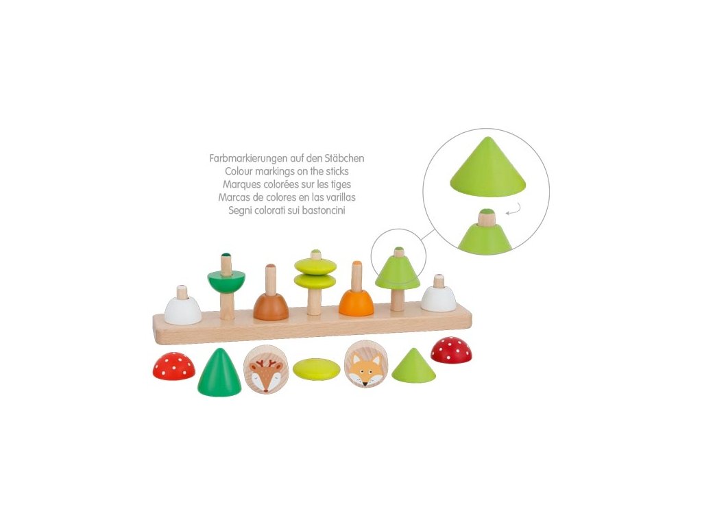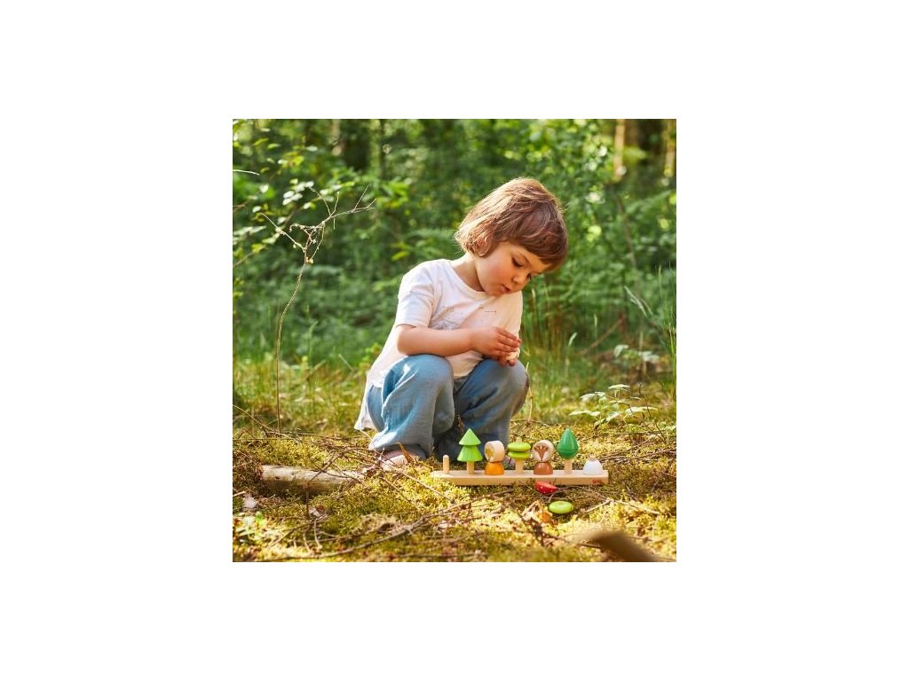 Třídění barev a tvarů – Malí lesní kamarádi je krásná dřevěná vzdělávací hra, která přivádí děti už od dvou let do světa lesa, zvířátek a přírodních tvarů. Vklouzne li do hry liška, srneček či kouzelná houbička, rázem vzniká příběh, ve kterém se dítě stává objevitelem a tvůrcem vlastního lesního dobrodružství.