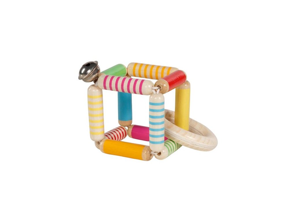 Tato smyslová hračka stimuluje dětskou zvídavost a pomáhá rozvíjet jemnou motoriku i prostorové vnímání. Dřevěné dílky jsou hladce opracované a bezpečné pro dětská ústa, takže si s kostkou mohou děti bezpečně hrát i v období prořezávání zoubků.