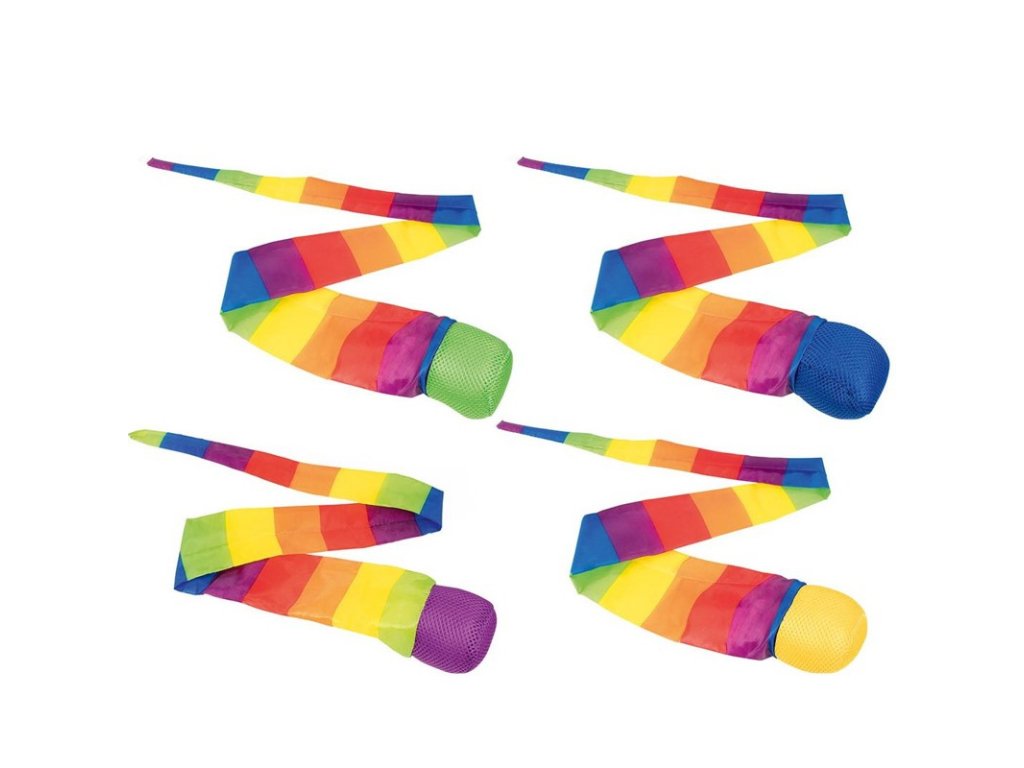 Princip je prostý: měkký míček na jednom konci, dlouhý duhový chvost na druhém. Děti ho chytí za ocas, roztočí nad hlavou a vypustí – a pak jen sledují, jak kometa letí a její barevná stopa kreslí oblouky ve vzduchu. Je to pohled, který baví nejen děti, ale i dospělé (a ano, budete to chtít zkusit taky).