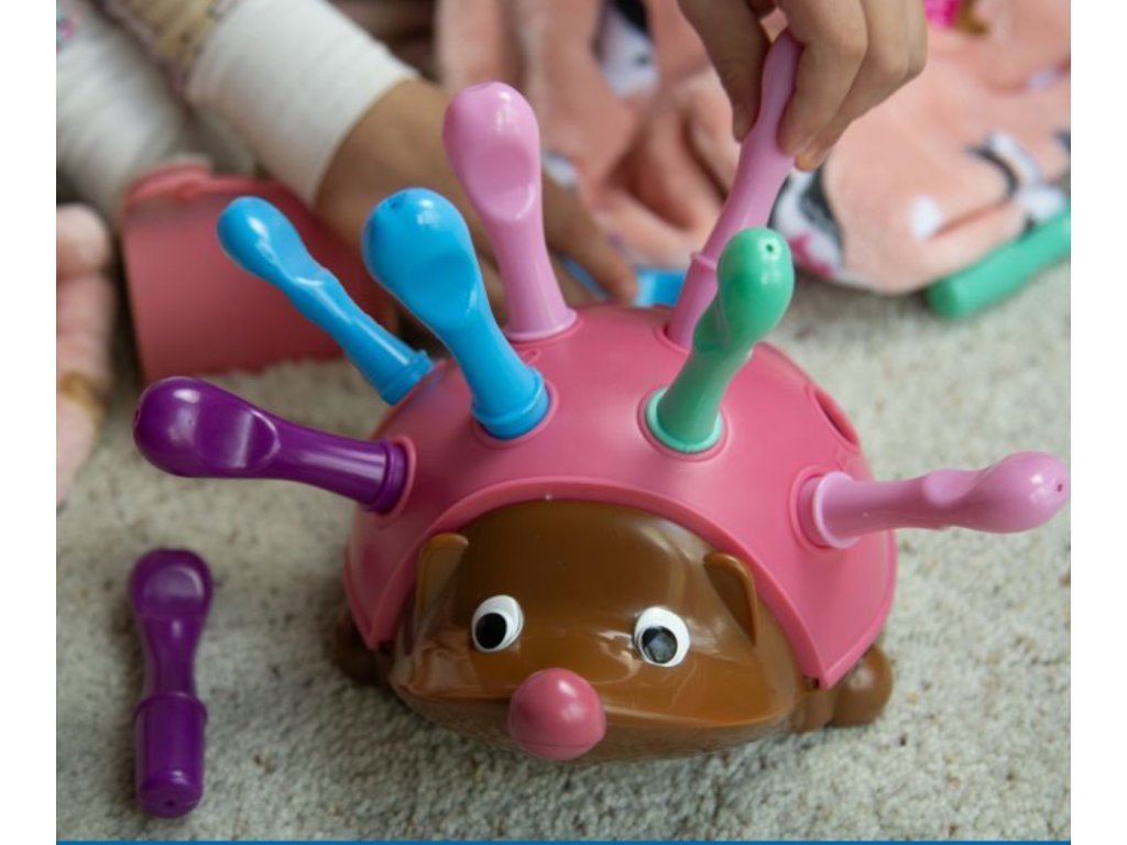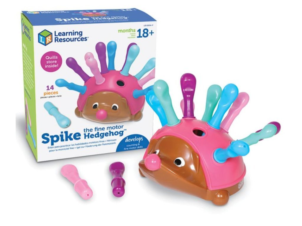 Barevný ježek Spike od značky Learning Resources je oblíbená vzdělávací hračka, která pomáhá dětem rozvíjet jemnou motoriku, správný úchop prstů i koordinaci ruka–oko. Děti vkládají 12 barevných ostnů do otvorů na hřbetu ježka, čímž si přirozeně procvičují prstíky a soustředění.