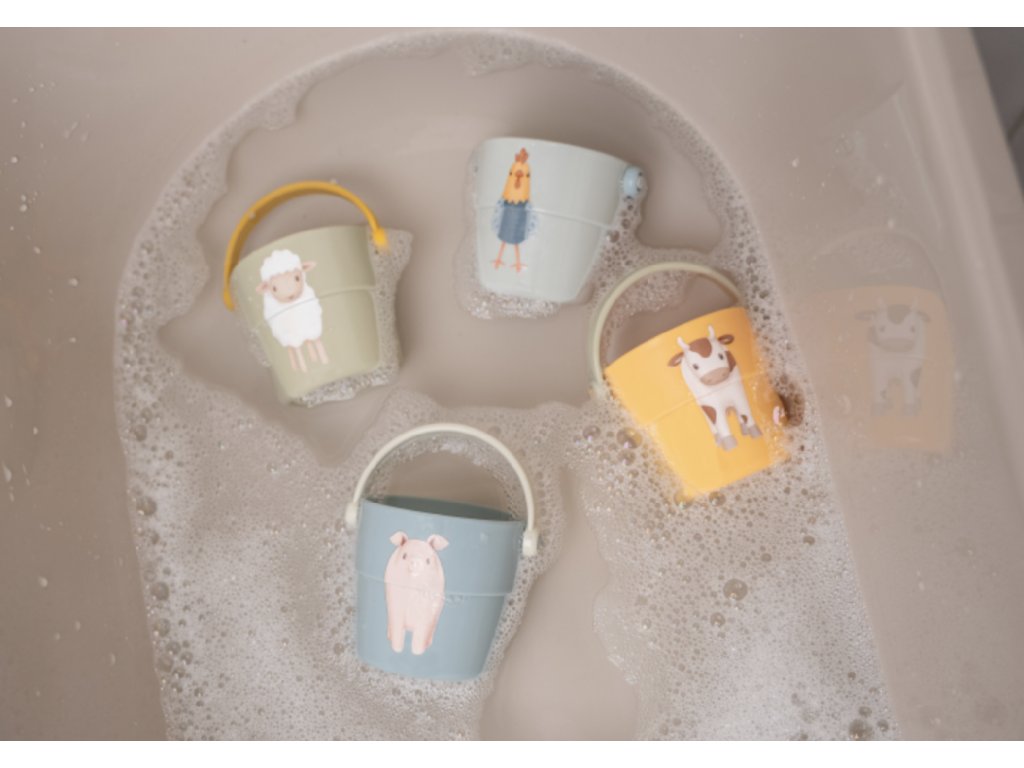 Malé kyblíčky od značky Little Dutch jsou nejen skvělým doplňkem do koupele, ale také ideální pro cestování. S jejich praktickou velikostí se snadno vejdou do cestovní tašky nebo batohu, což z nich činí skvělého společníka na každou výpravu. Tyto kyblíčky nejenže přinášejí radost a zábavu při koupání, ale jsou také skvělým nástrojem pro hravé aktivity na suchu. S jejich jemnými pastelovými barvami a ilustracemi -farma a jejích kamarádů si děti užijí spoustu zábavy a kreativity, a to nejen doma, ale i na cestách. Rozměry 7 x 8 cm. Vhodné pro děti od 18 měsíců.