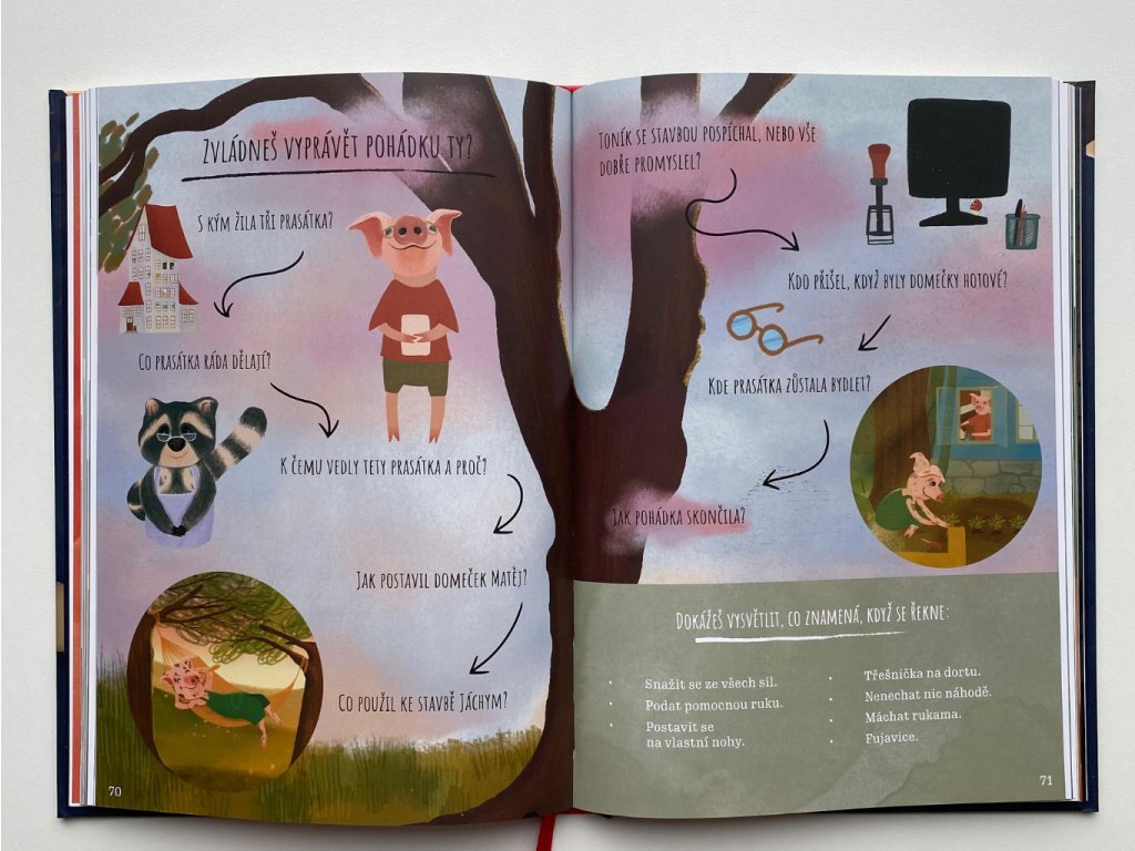 Kniha obsahuje také interaktivní prvky, které pomáhají udržet pozornost, posilují soustředění a umožňují dětem aktivně se zapojit do příběhu. Postupně tak mohou přejít až k vlastnímu převyprávění pohádky, což podporuje slovní zásobu, paměť i sebevědomí.