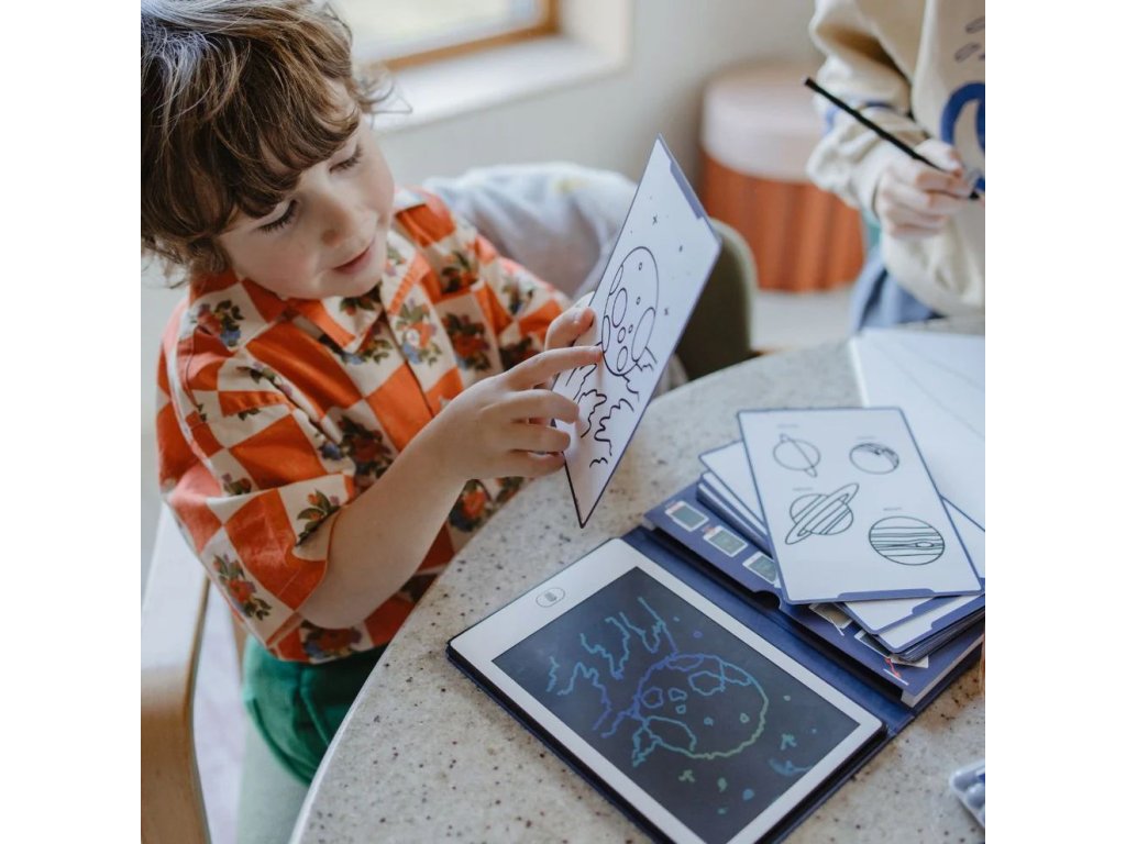 Objevte nekonečný svět kreativity s kreslícím tabletem KIDYDRAW MINI – Galaxy od belgické značky Kidywolf. Tento kompaktní a přenosný tablet s LCD obrazovkou o velikosti 8,2″ přináší dětem jedinečný zážitek z kreslení díky 30 výměnným ilustracím na téma vesmír a planetární dobrodružství.