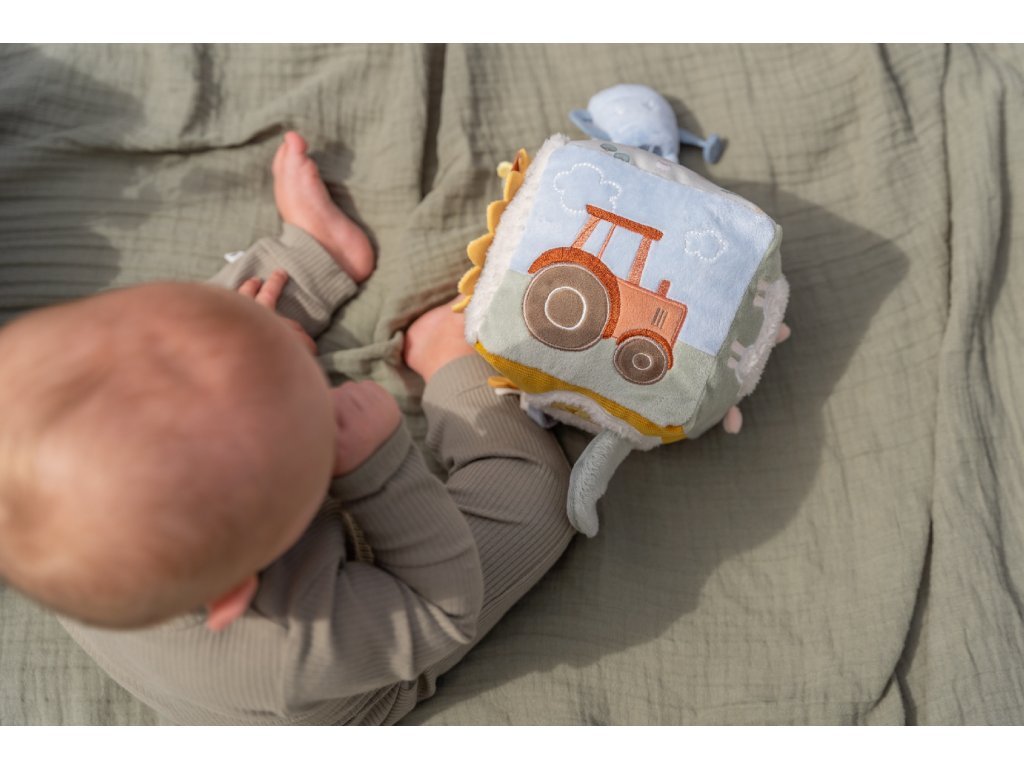 Textilní kostka Little Dutch Farma je skvělou volbou pro první objevování světa hrou – doma, v kočárku i na cestách.