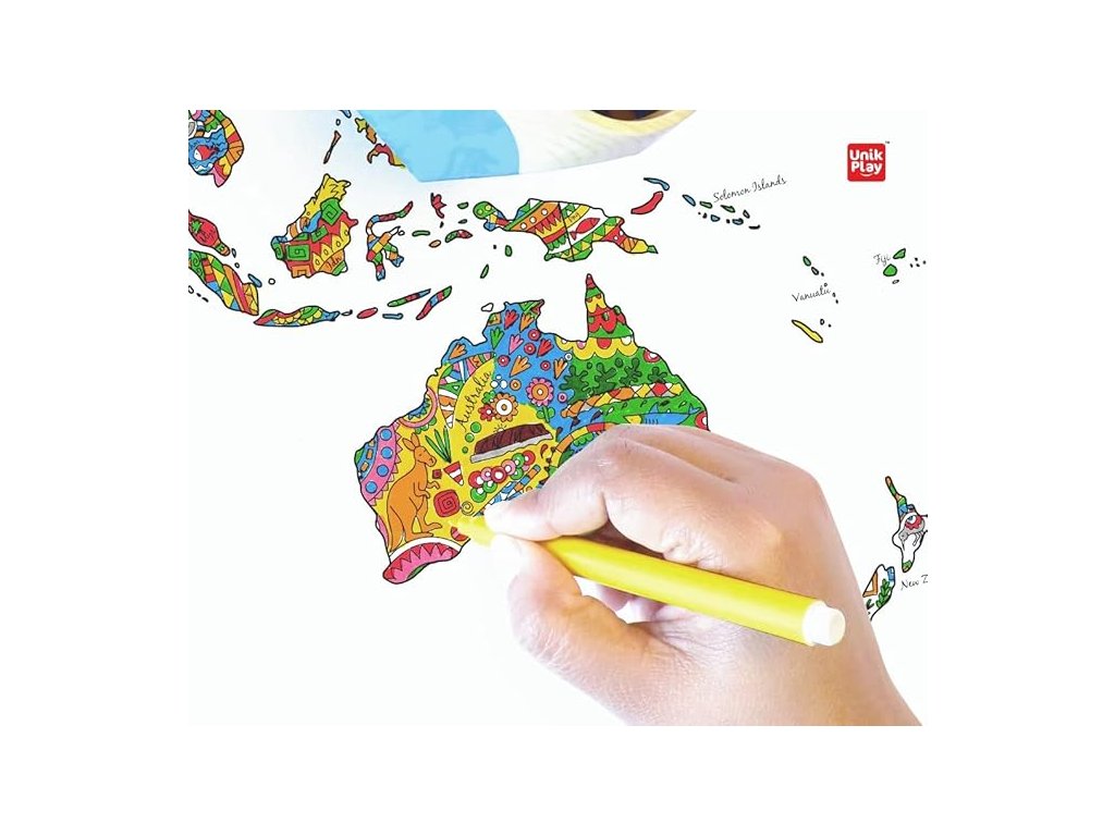 Mapa je ideální jako rodinná aktivita, školní pomůcka, kreativní relax po náročném dni nebo jako originální dekorace do dětského pokoje, pracovny či obýváku. Díky přiloženým fixům můžete začít tvořit hned po rozbalení – žádné další pomůcky nejsou potřeba.