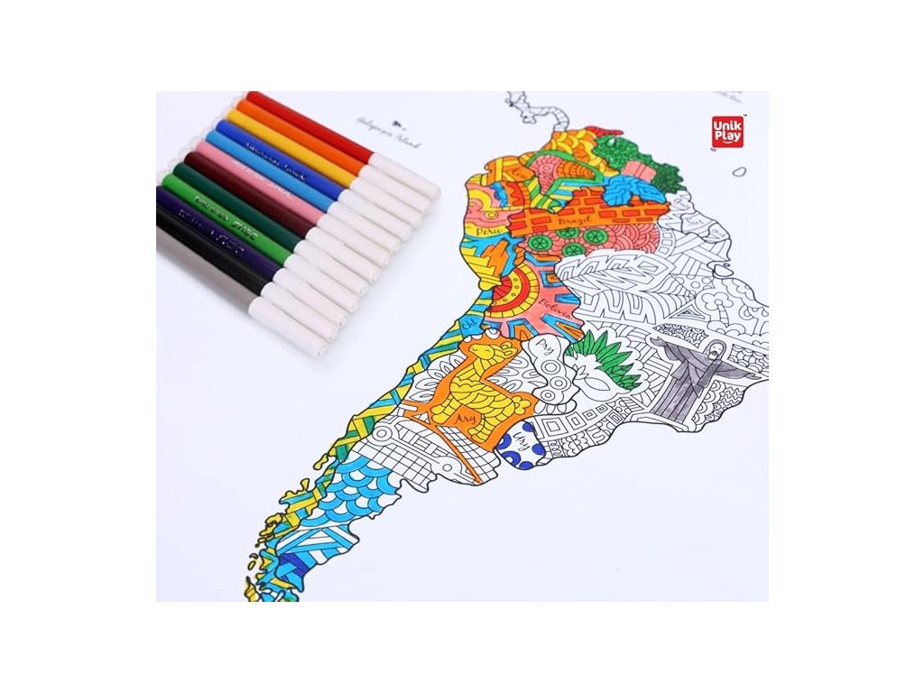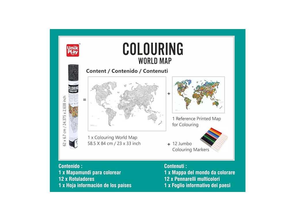 Tvořivá mapa světa k vybarvování je víc než jen plakát – je to osobní mapa zážitků, snů a objevování. Děti i dospělí si pomocí přiložených barevných fixů mohou postupně vybarvovat země, které už navštívili, nebo si barevně označit místa, kam se teprve chystají. Každá barva tak získává svůj vlastní příběh.