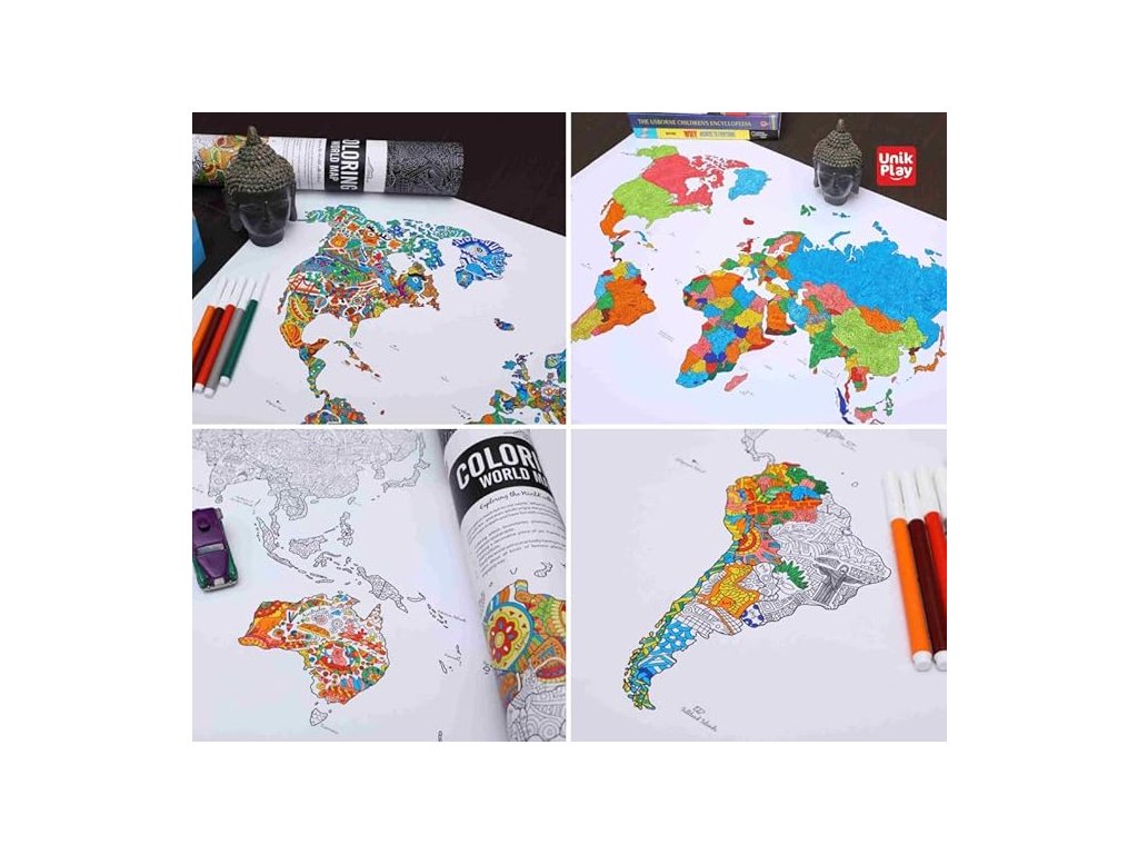 Vybarvování mapy světa podporuje kreativitu, soustředění a jemnou motoriku, zároveň ale nenásilnou formou rozšiřuje znalosti o zeměpisu. Děti se přirozeně učí názvy států, jejich polohu a vztahy mezi kontinenty, aniž by měly pocit, že se „učí“. Dospělí si zase mohou vytvořit krásnou cestovatelskou mapu na zeď, která připomíná společné dovolené, výlety i životní dobrodružství.
