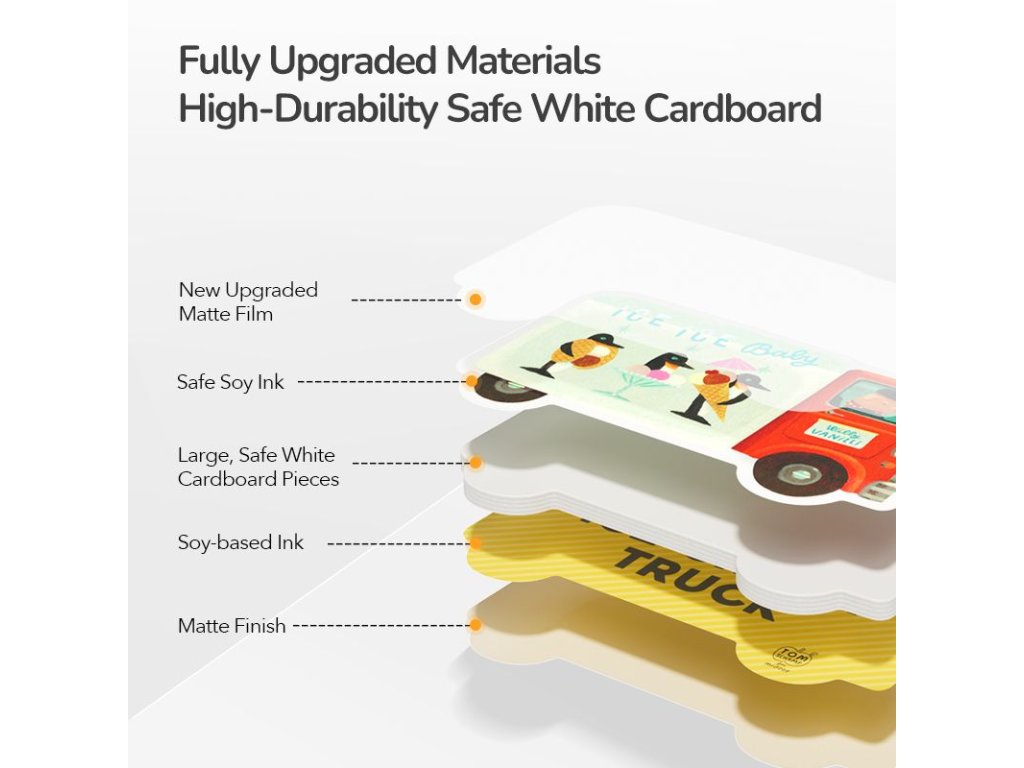 Puzzle jsou potištěna ekologickými sójovými barvami a mají matný povrch, takže jsou bezpečná a příjemná na dotek.