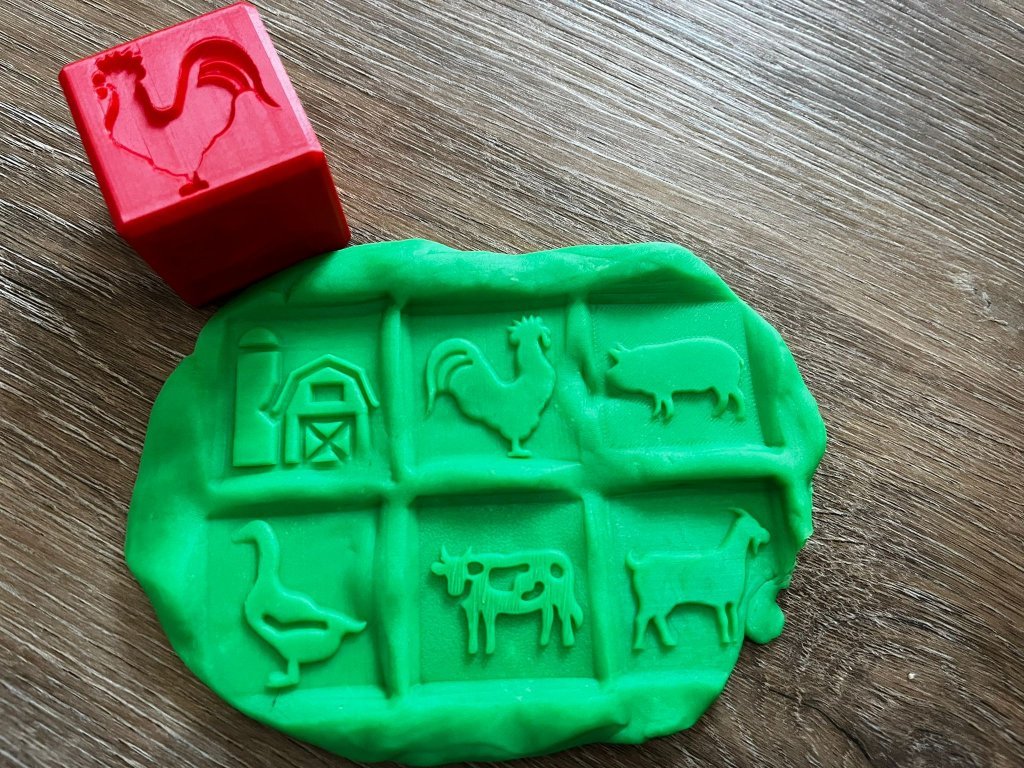 Stačí kostku přitlačit do plastelíny, modelíny nebo kinetického písku a během chvilky se objeví roztomilé otisky zvířátek. Hračka rozvíjí jemnou motoriku, fantazii i slovní zásobu – děti si při hře mohou povídat o zvířátkách a jejich životě na farmě.