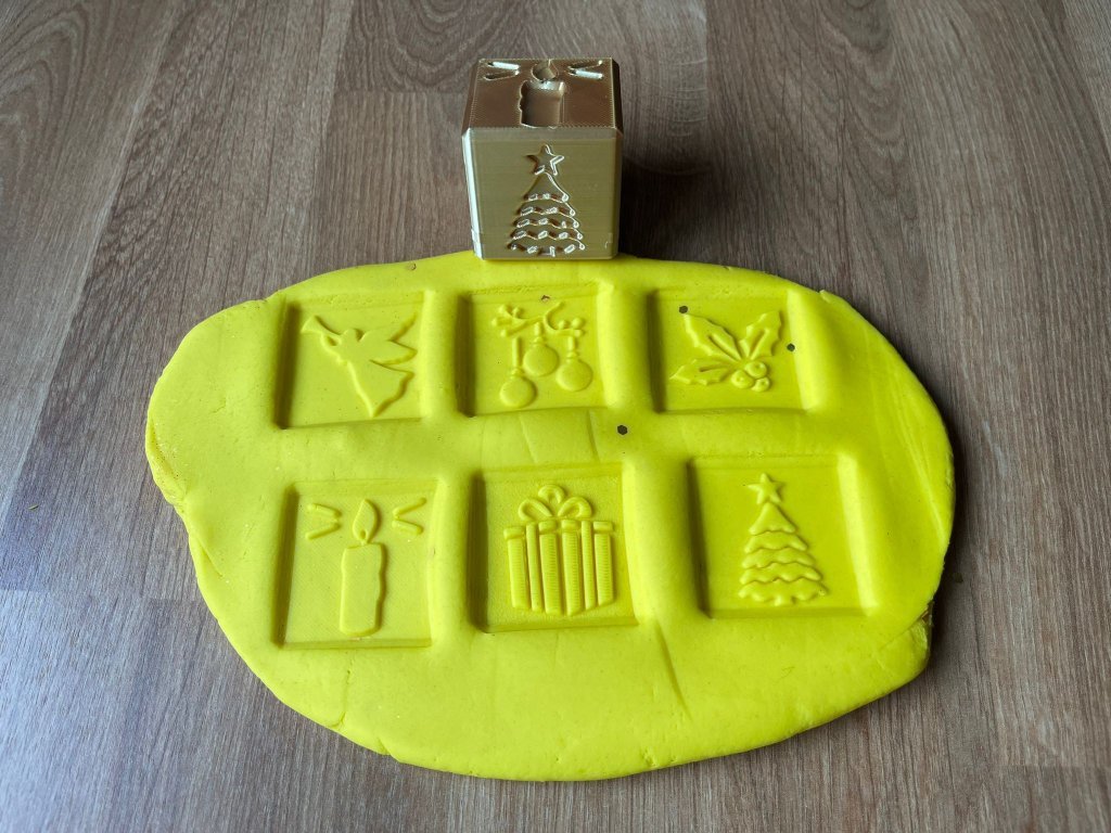Přineste do hry kouzlo Vánoc! ✨ Otiskávací kostka Vánoce promění obyčejnou modelínu nebo plastelínu v radost plnou vánočních motivů. Na každé straně se skrývá jiný obrázek - celkem tedy 6 krásných symbolů Vánoc, které děti během chvilky otisknou do svých výtvorů.