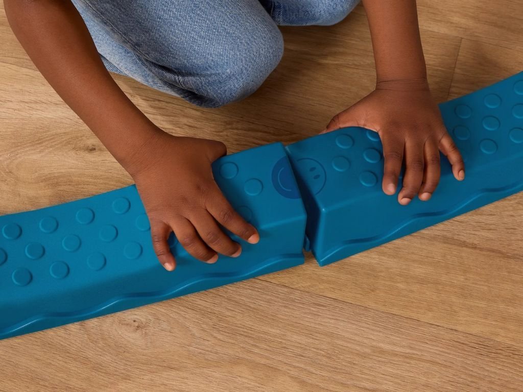 Součástí sady jsou vlnité i rovné překážky a senzorické stupínky s různými texturami, které podporují rozvoj rovnováhy, koordinace a hrubé motoriky. Každý krok je jiný – děti vnímají povrch pod nohama, zapojují celé tělo a učí se lépe ovládat pohyb.