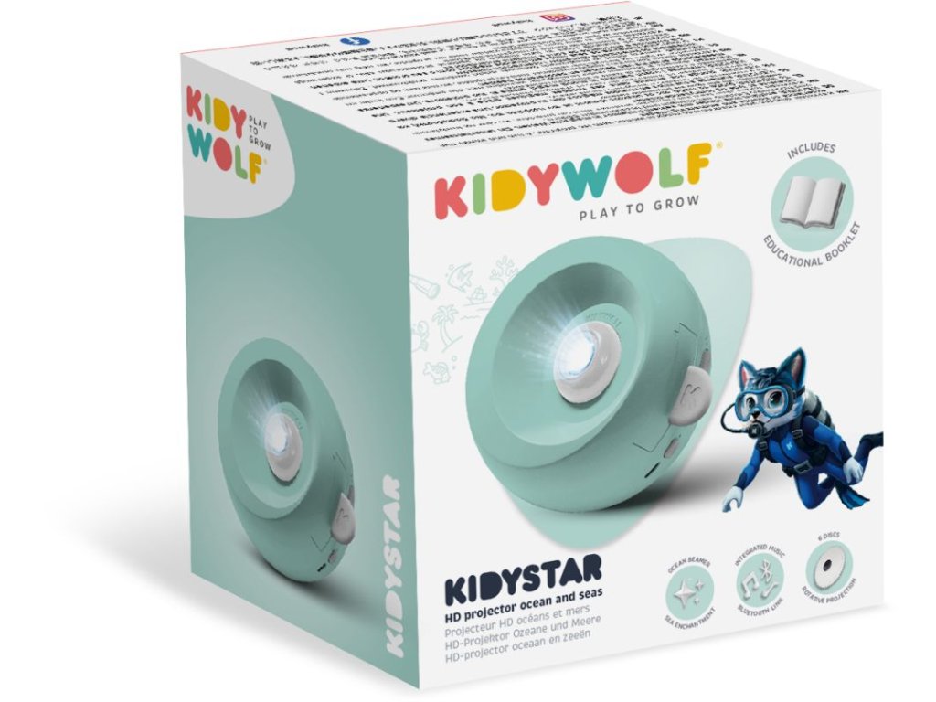 Vneste do dětského pokoje kouzlo oceánu. Projektor Kidywolf KIDYSTAR – život v oceánu promítá na strop a stěny fascinující svět mořských živočichů a podmořské přírody. Děti tak mohou objevovat oceán z pohodlí svého pokoje a ponořit se do hry i poznávání zároveň.