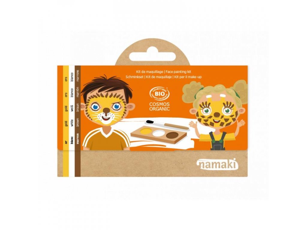 Představujeme vám hypoalergenní make-up na vodní bázi od značky Namaki s certifikátem BIO, který je skvělým doplňkem pro dětské oslavy. Tato paleta přírodních barev na obličej obsahuje tři živé barvy (zlatou, bílou, zlatavou), ideální pro tvorbu obličejových maleb, a dva šablony pro jednoduché líčení. S touto sadou můžete dětem dopřát hodiny zábavy a kreativity, ať už se rozhodnou přeměnit se na lva, žirafu nebo jiné postavičky podle jejich fantazie. Make-up je snadno odstranitelný teplou vodou a mýdlem, což zaručuje bezproblémové a bezpečné použití.