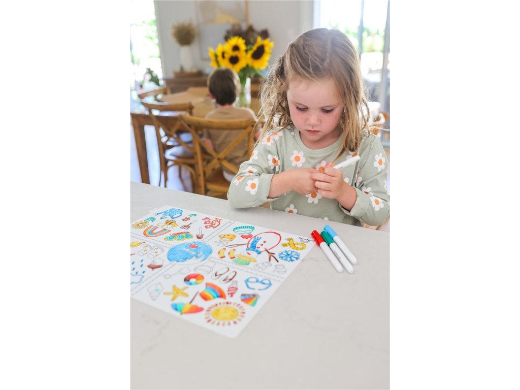 Podložka je ideální doma, na cestách, v restauraci i na prázdninách – vždy, když chcete děti zabavit tvořivou a zároveň vzdělávací aktivitou.