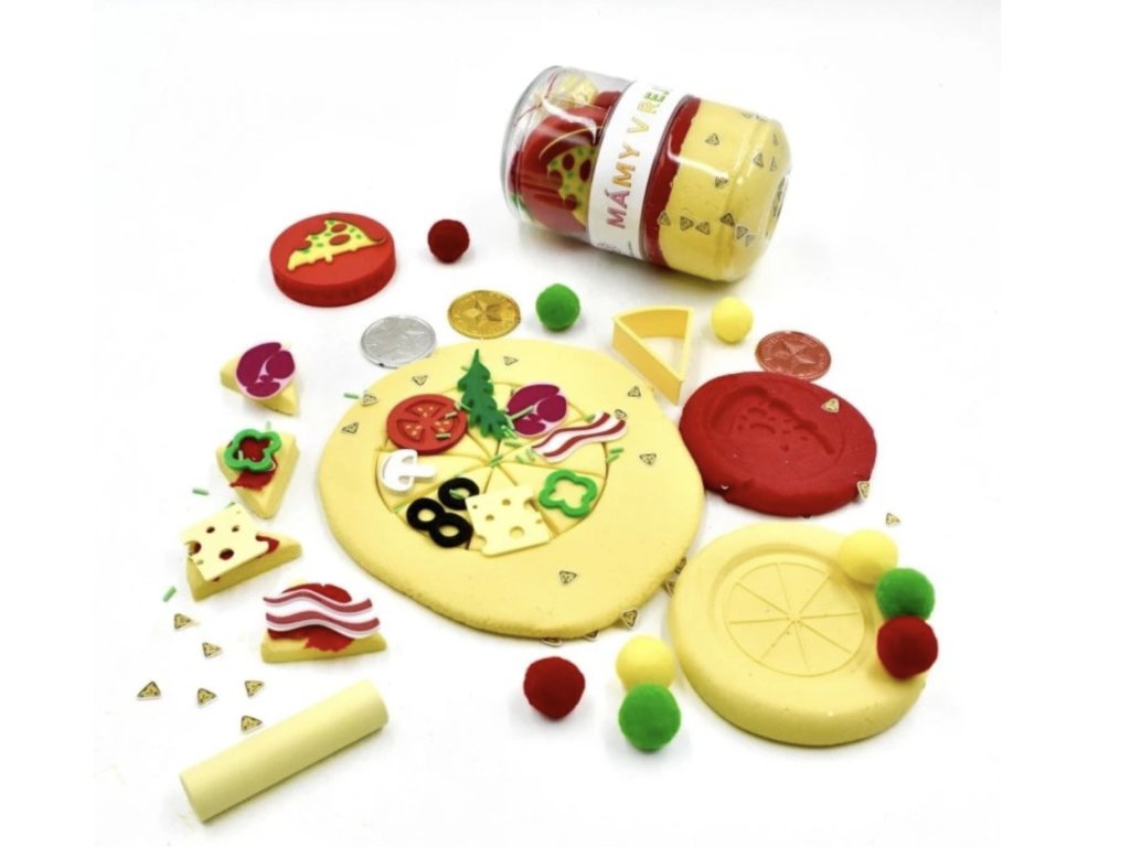 Zavaž zástěru, máme objednávku! 🍕 Smyslína „V pizzerii“ promění každého malého šéfkuchaře v kuchařskou hvězdu. Děti si s měkkoučkou Mamolínou (domácí modelínou) vytvarují vlastní pizzu, ozdobí ji sýrem, zeleninou i posypkou z konfet – a klidně si rovnou otevřou vlastní pizzabar.