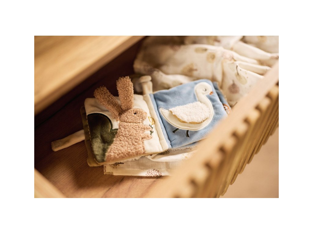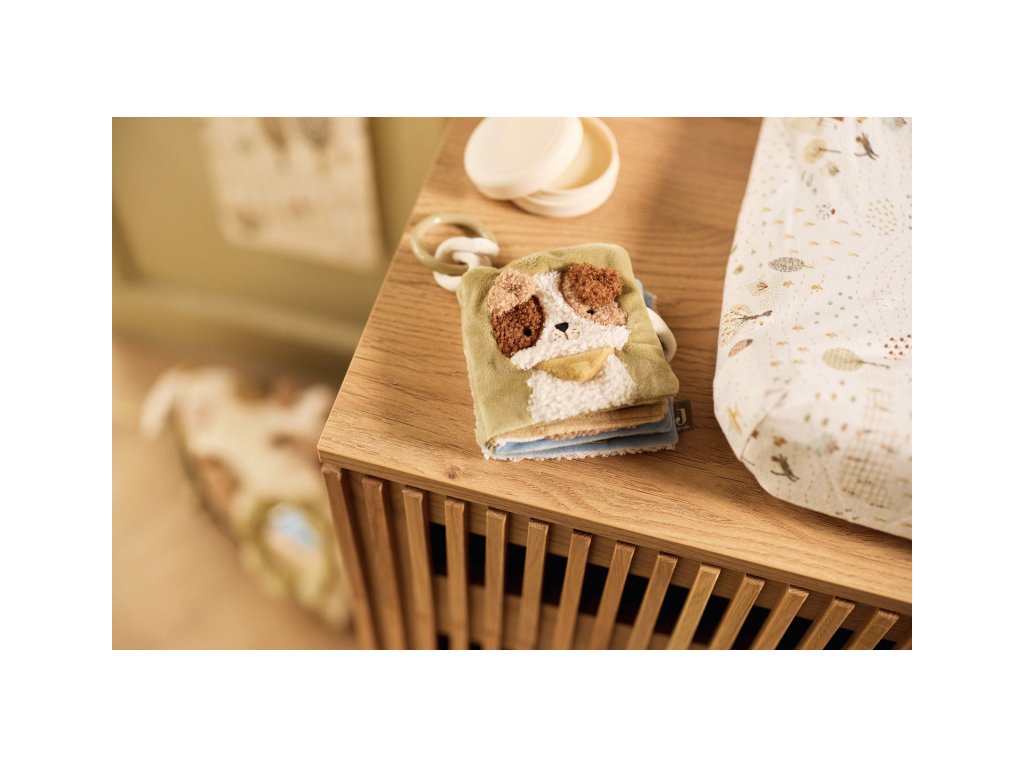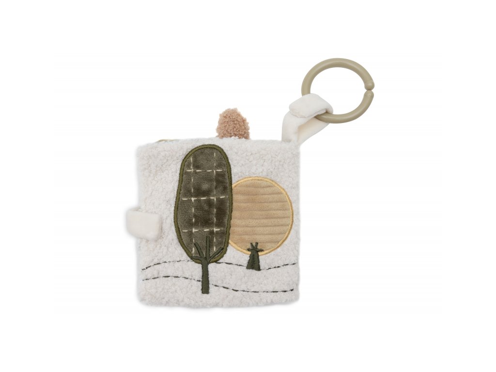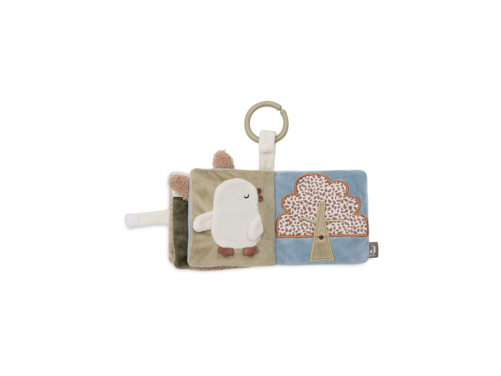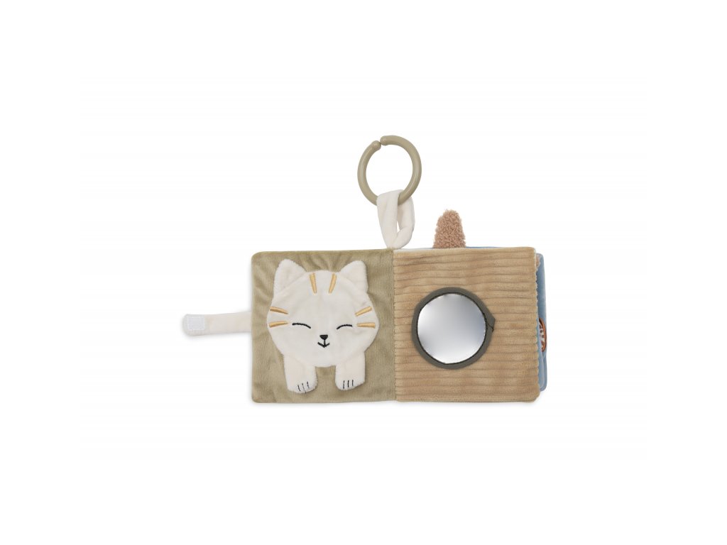 Roztomilá textilní knížka s motivy zvířátek z různých materiálů je ideální volbou pro první knížku vašeho miminka. Barevné stránky, šustící části a bezpečné zrcátko rozvíjejí smysly a motoriku dítěte. Díky praktickému plastovému kroužku ji snadno připevníte na kočárek nebo autosedačku.