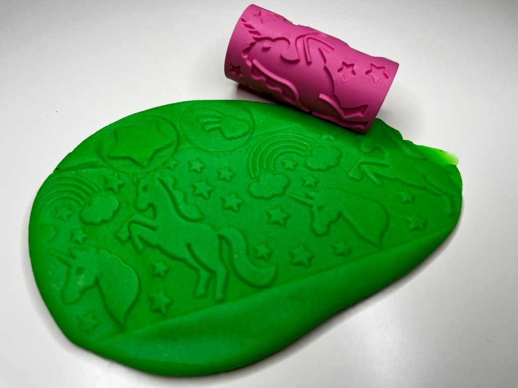 Čeká vás kouzelný svět plný jednorožců, hvězdiček a duhy! 🌈 Otiskovací váleček Jednorožec nadchne všechny malé tvůrce, kteří milují fantazii a tvoření. Stačí pár tahů po plastelíně, modelíně nebo kinetickém písku a objeví se nádherné otisky s veselými motivy.