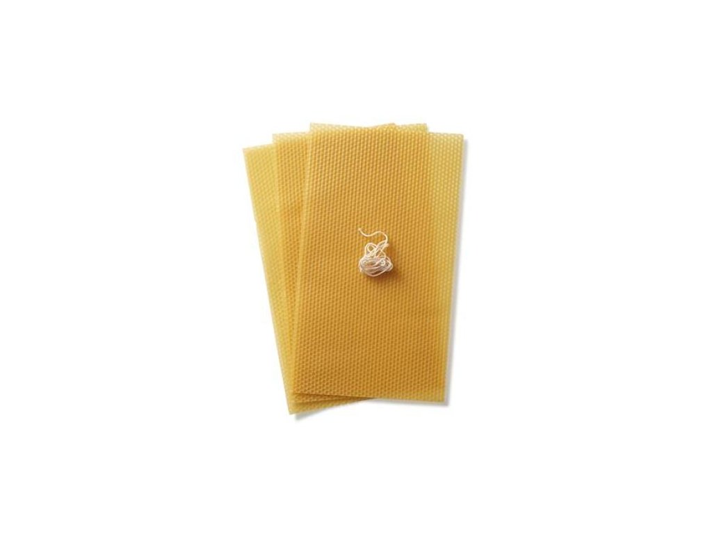 Obsah balení: 3ks plátů včelího vosku, 1 m bavlněného knotu, obrázkový návod.