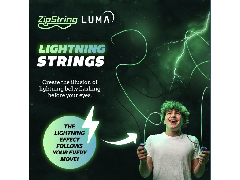 Máte ZipString Luma a chcete víc? Lightning Pack je sada tří svítících provázků, které promění vaše triky v neonovou show. Stačí zhasnout světlo – a provázek září jako blesk! Žádné baterie, žádné nabíjení. Čistá magie fosforescence.